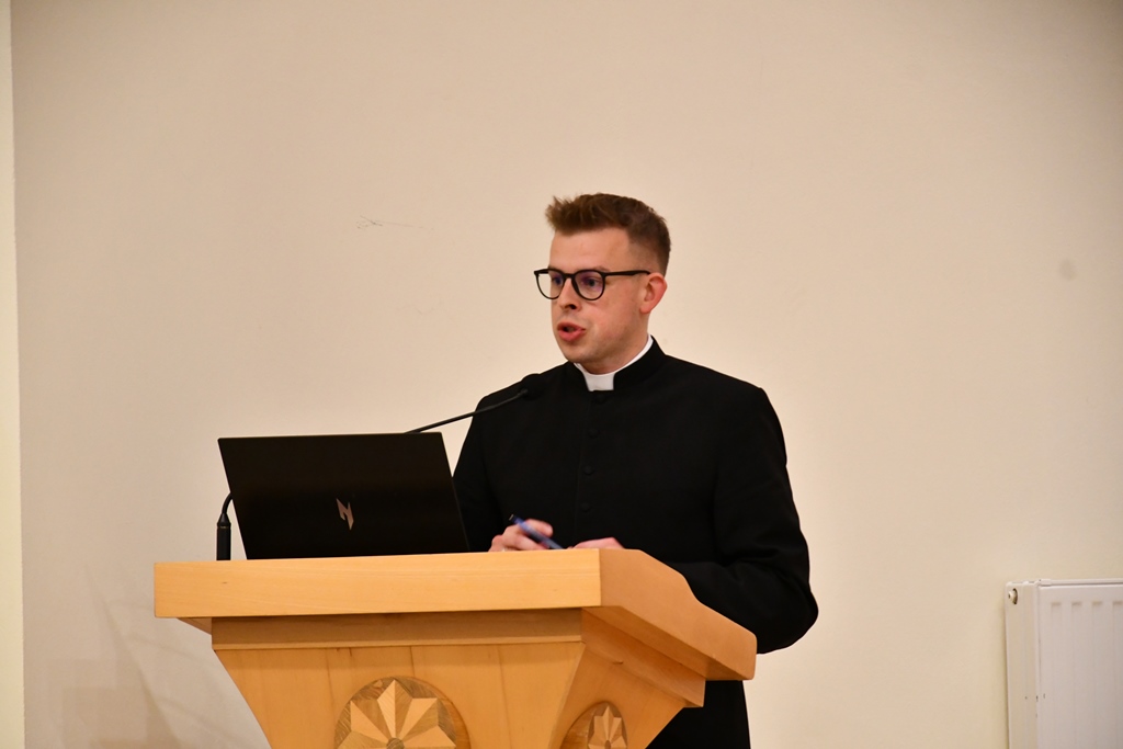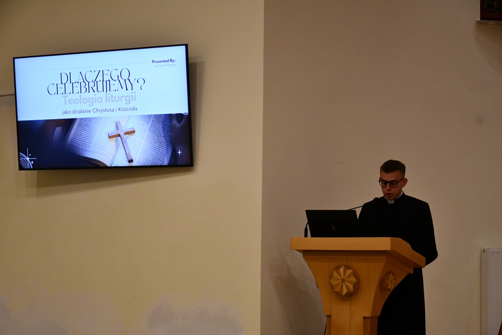 Ks. Patryk Nagórny zaprezentował temat dotyczący teologii liturgii. Wyjaśniał zagadnienia zawarte w dokumencie soborowym Sacrosanctum Concilium. Podkreślił, że liturgia jest zarówno działaniem samego Chrystusa jak i Kościoła.