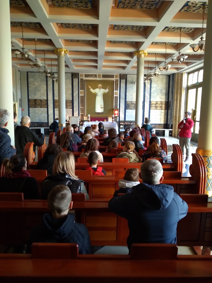 Po skończonej Mszy św. cała grupa wraz z przewodnikiem udała się na zwiedzanie wnętrz największej bazyliki w Polsce. Na początku wszyscy wysłuchali historii Cudownego Obrazu , którego koronacji koroną papieską dokonał sam Prymas Tysiąclecia kard. Stefan Wyszyński . Dalszym etapem zwiedzania były kapliczki usytuowane w dolnej części Bazyliki, m.in. Kaplica Kapłańska, Kaplica Całunu Turyńskiego, Kaplica świętego o. Papczyńskiego i Kaplica Trójcy Świętej. Tu także znajduje się Kaplica Krzyża Świętego. W ołtarzu umiejscowiony jest krucyfiks, z którym wiąże się niesamowita historia. W czasie II wojny światowej z okrucieństwem strzelała do niego Berta Bauer – wychowawczyni niemieckich dzieci. W dalszej części znajduje się mnóstwo pamiątkowych tablic ofiarodawców. Tu też można zobaczyć tron papieski, pamiątkę po Papieżu Janie Pawle II, który w 1999 roku przebywał w Licheniu.