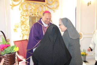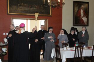Delegacje sióstr zakonnych z terenu diecezji drohiczyńskiej przybyły 23 marca do Drohiczyna, aby złożyć świąteczne życzenia Biskupowi.