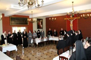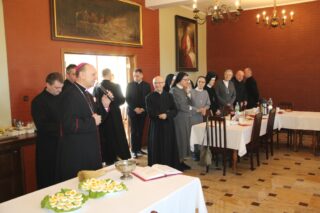 Delegacje sióstr zakonnych z terenu diecezji drohiczyńskiej przybyły 23 marca do Drohiczyna, aby złożyć świąteczne życzenia biskupowi drohiczyńskiemu Tadeuszowi Pikusowi, kapłanom pracującym w Kurii Diecezjalnej oraz profesorom i alumnom Wyższego Seminarium Duchownego.