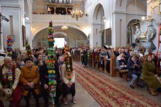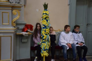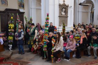 Zgodnie z dwudziestoczteroletnią tradycją Niedziela Palmowa w ciechanowieckiej parafii połączona jest z konkursem palm organizowanym przez Muzeum Rolnictwa im. ks. Krzysztofa Kluka w Ciechanowcu. Mimo że czas pandemii w ubiegłych latach przeszkodził w organizacji konkursu, w tym roku wpłynęło 300 prac. Cześć z nich stanowiła barwny korowód, który przeszedł w procesji wokół kościoła. Palmy uprzednio pobłogosławił ks. bp Piotr Sawczuk. Odczytanie Ewangelii o uroczystym wjeździe Chrystusa do Jerozolimy wprowadziło wiernych w liturgię Niedzieli Męki Pańskiej.