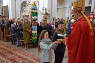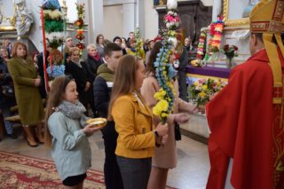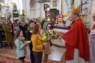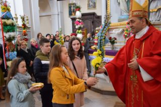 Radosne Hosanna wybrzmiało podczas liturgii Niedzieli Palmowej, której 10 kwietnia 2022 r. w kościele parafialnym w Ciechanowcu przewodniczył ks. bp Piotr Sawczuk.