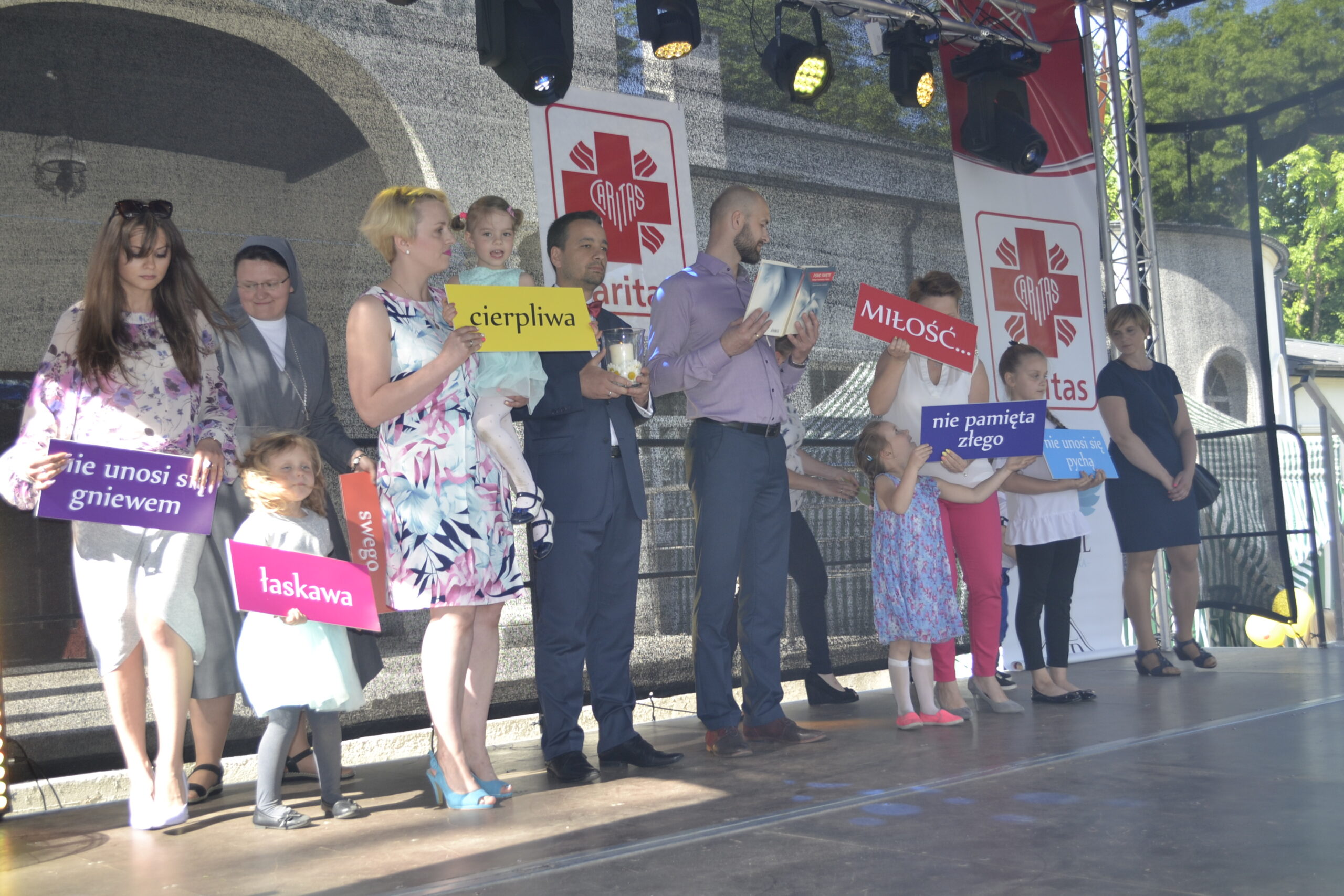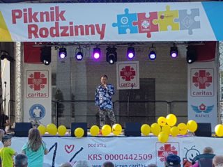 Podczas festynu swoje umiejętności taneczne i wokalne zaprezentowały dzieci z sokołowskich przedszkoli – nr 2, nr 3, nr 4 „Leśna Kraina”, nr 5 „Kubusia Puchatka”, Sióstr Salezjanek im. św. Marii Dominiki Mazzarello, „Chatka Puchatka” oraz „Akademia Puchatka”, uczniowie z Zespołu Szkół im. Jana Pawła II, podopieczni Warsztatów Terapii Zajęciowej prowadzonych przez Caritas , PNC Dance Studio, Ewelina Krzymowska oraz Zespół „Złote Lata”. Na zakończenie, jako gwiazda wieczoru, swój recital kabaretowo-muzyczny przedstawił Piotr Pręgowski. Całość prowadzili – ks. Łukasz Gołębiewski, dyrektor Caritas oraz Maciej Koszewski, kleryk WSD w Drohiczynie.