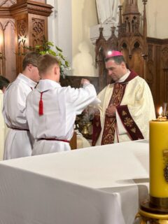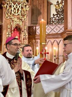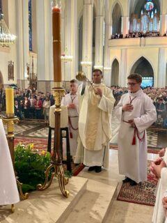 Biskup Piotr Sawczuk 19 kwietnia 2025 r. w sokołowskiej konkatedrze przewodniczył uroczystej liturii Wigilii Paschalnej.