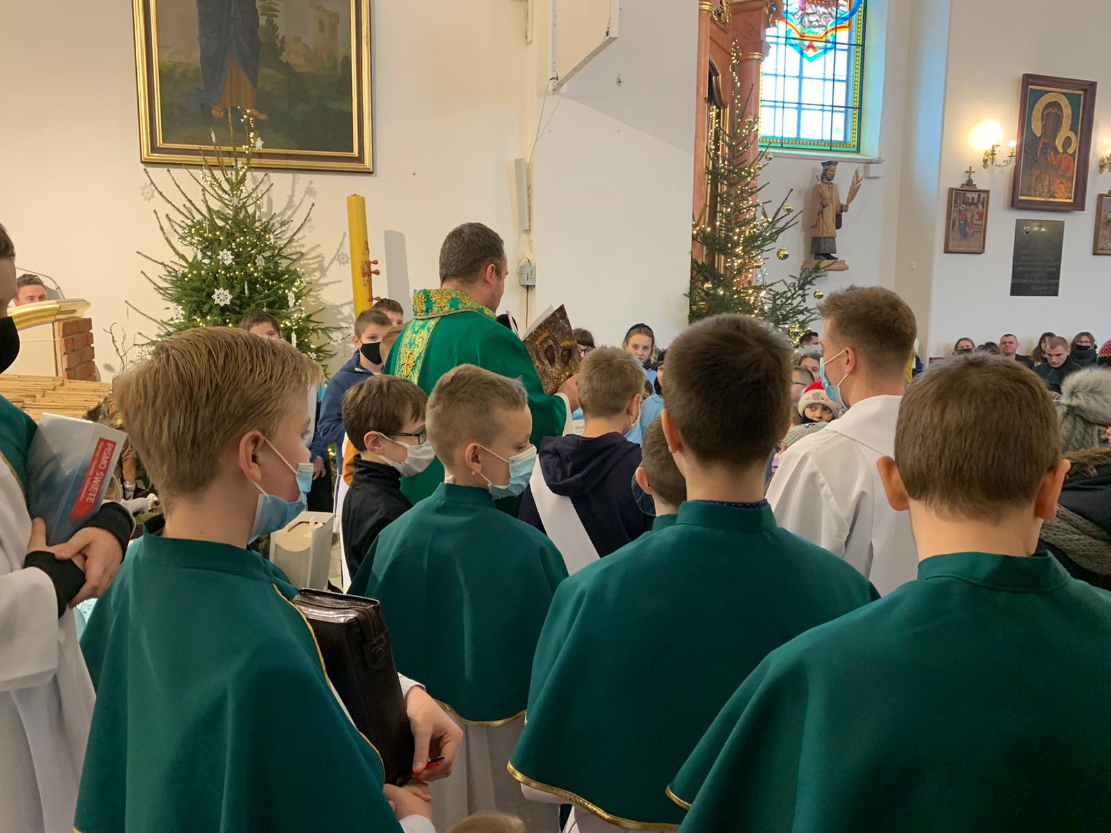 Ten dzień był także dniem szczególnych podziękowań skierowanych do ministrantów. Pod koniec Mszy Świętej otrzymali oni nagrody za gorliwą służbę przy ołtarzu w 2020 r. Trzeba przyznać, że mimo wielu restrykcji w czasie epidemii, ministranci wykazywali się wielką gorliwością – zarówno w służbie w kościele, jak też w zbiórkach, które przez jakiś czas odbywały się nawet online. Ksiądz Proboszcz wręczył także chłopcom medale za zawody zorganizowane w trakcie ferii zimowych.